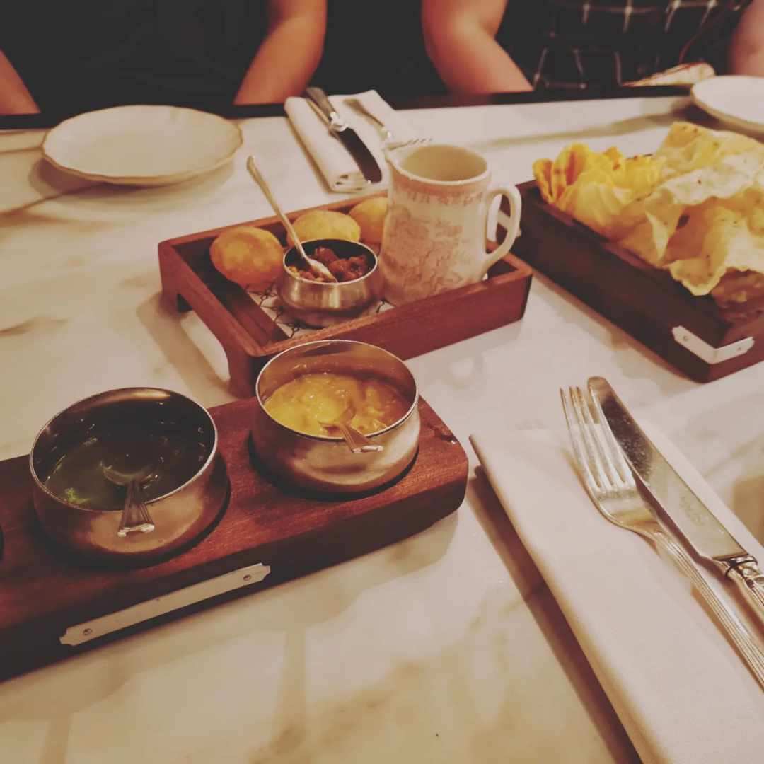 I ordered from the A La Carte menu, getting a starter of Punjabi Samosa. This is a savory, pyramid-shaped fried treat filled with potatoes and peas. It came with a delicious Saunth Chutney. My relatively undeveloped palate couldn’t tell the chutney from a sweet barbecue sauce. I was hesitant to share this opinion, but luckily Isaac agreed with me and I felt vindicated. Still tasty. As we waited for our main courses to arrive, we all sampled from Isaac’s tasting menu, which kept small sample plates coming consistently. Of these, my favorite was a dish that involved some impossibly crunchy yet light potatoes, seasoned with primarily cumin in a bowl with cheese and another delicious chutney. I wish I remembered the name, because I’ll probably never be able to find it again.
