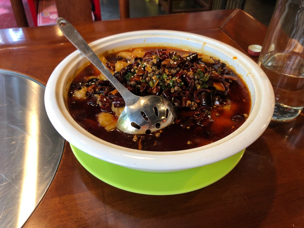 - The week of our departure from London to Stratford-upon-Avon, I stopped into a Chinese restaurant nearby the hotel. The menu had very little English on it, only being used for short descriptors of the food’s content rather than any sort of formal name for the various dishes, and some of the items listed were…abnormal in my opinion. To my credit, I tried to order an appetizer that was outside my comfort zone (rabbit head cooked in hot chili sauce, in case anyone was curious), but was told it was not available. Though, given the portion size of the boiled fish filet in hot chili sauce that I ordered instead, I would have been too full to finish the entrée if they had that appetizer in stock. The fish was soft and thoroughly took on the flavor of the sauce, as did the vegetables and other ingredients in the bowl, but the spice level made my nose start running by the time I was about half way through the meal.