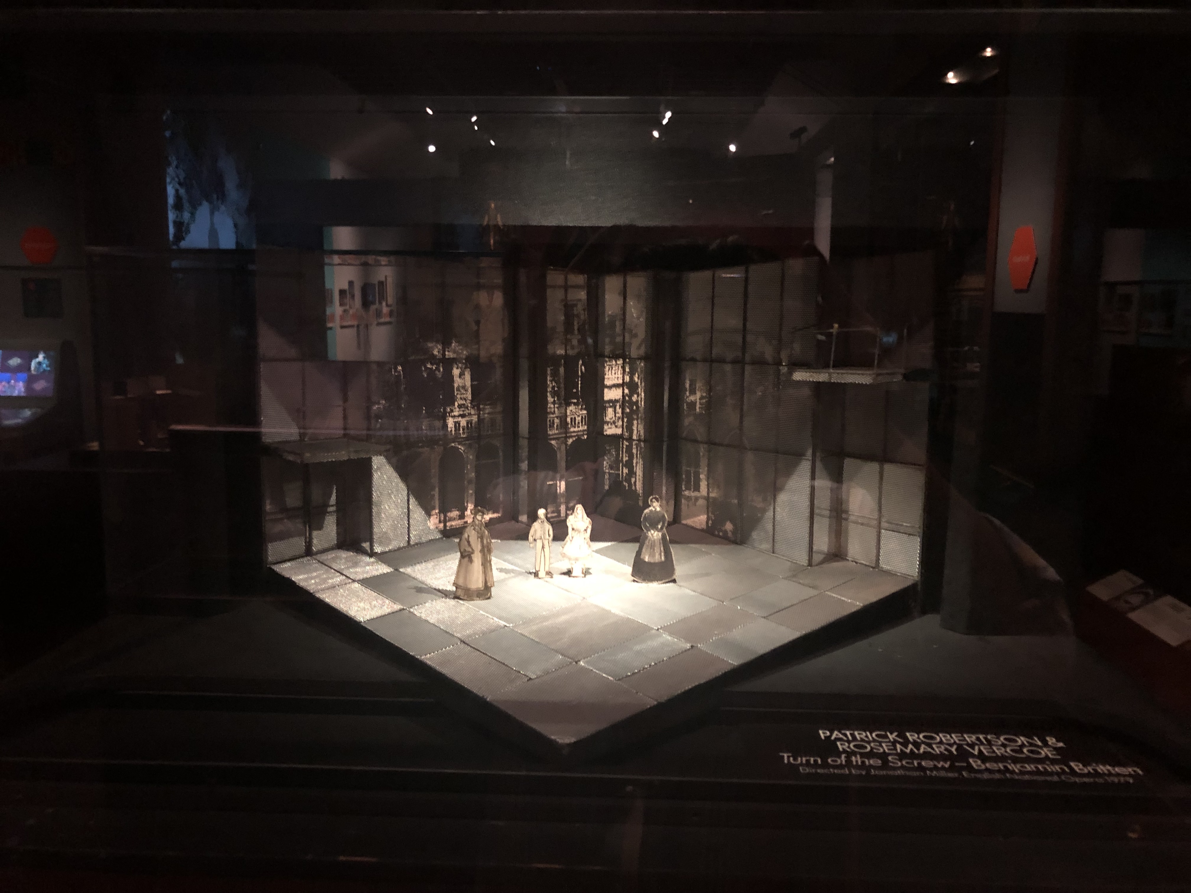 A particular set model caught my eye, from the 1979 staging of The Turning of the Screw. I’m a big fan of this story, which one of my favorite directors, Mike Flanagan, adapted into the masterful horror series The Haunting of Bly Manor. As I read about the set, I was taken with the way the floor employed forced perspective to create artificial distance between the audience and the back of the set. Furthermore, a series of screens and scrims with ghosted projections of the walls of the manor worked to create the feeling of a sprawling, expansive and mysterious estate, supporting the undertones of dread and fear of the unknown that punctuate the story. The hazy and slightly unclear atmosphere reminded me of The Glass Menagerie, and represent fairly well what that show could have achieved with the right creative direction. With a combination of transparency and projections, I believe a set like this which called focus to center stage rather than the wings, along with a background which established tone and underscored central themes instead of singular moments could have done the Tennessee Williams classic more justice.