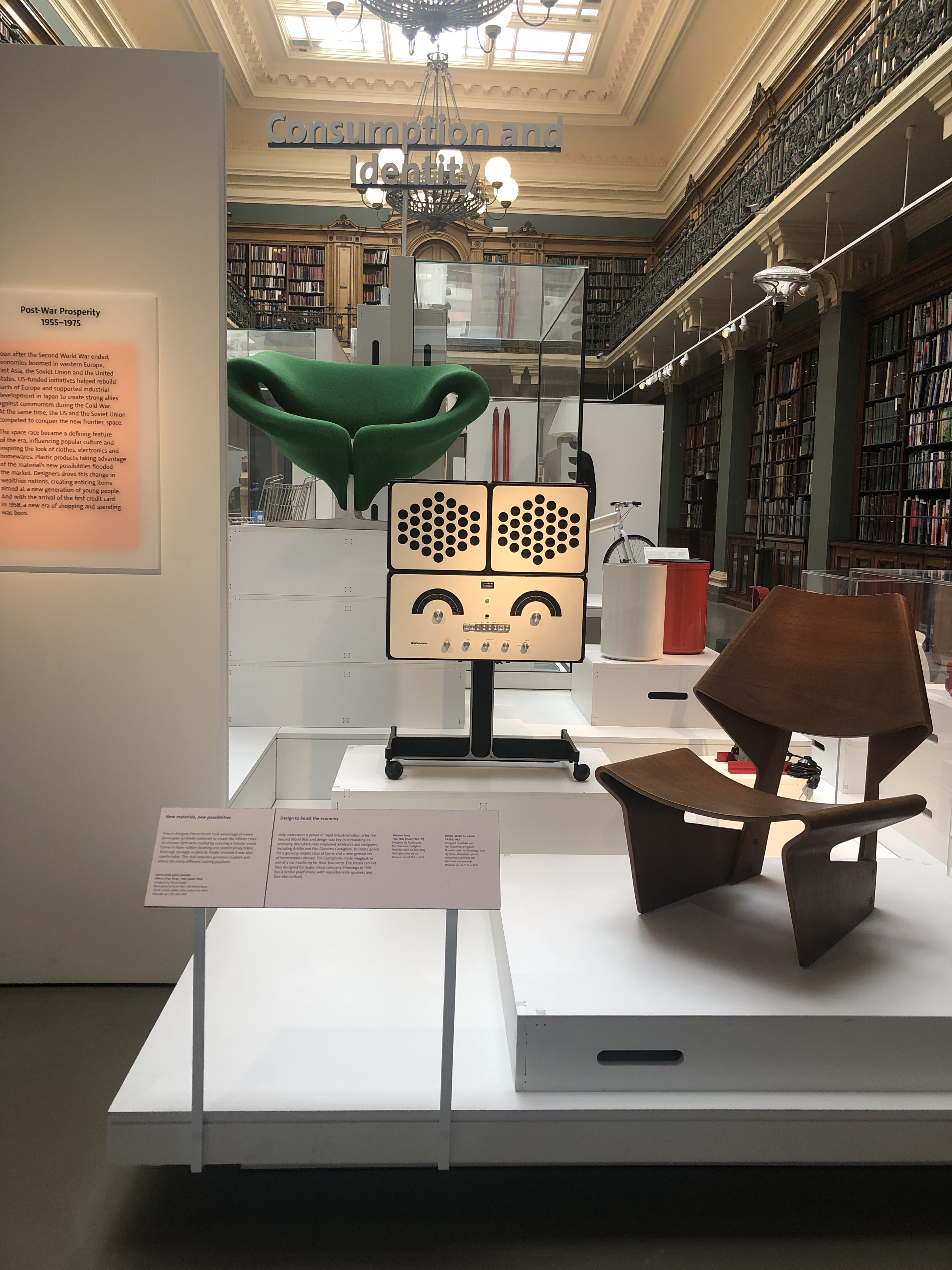 Our visit to the Victoria & Albert Museum was a little overwhelming, to be honest. Although I’m not the most attentive museumgoer (I don’t stop to read every plaque or examine every piece) I do generally like to take in every room and feel that I haven’t missed anything that might interest me. This was a fundamental problem on this visit because this place is immense and has no determined circulation pattern; it’s totally on you to find your way. After visiting the theatre exhibit, I gave it my best shot, but was fully overwhelmed by the many exhibits, directions and floors. After an hour and a half or so, I had to call it simply so that I stopped worrying about what I wasn’t seeing. This feels kind of silly in retrospect, but I’ll stick to my guns and say that it was the right choice in the moment. My silver lining is that I did manage to take in the “Design: 1900-Present” Exhibit, which had some furniture pieces that piqued my interest and I’ll be researching further down the line.
