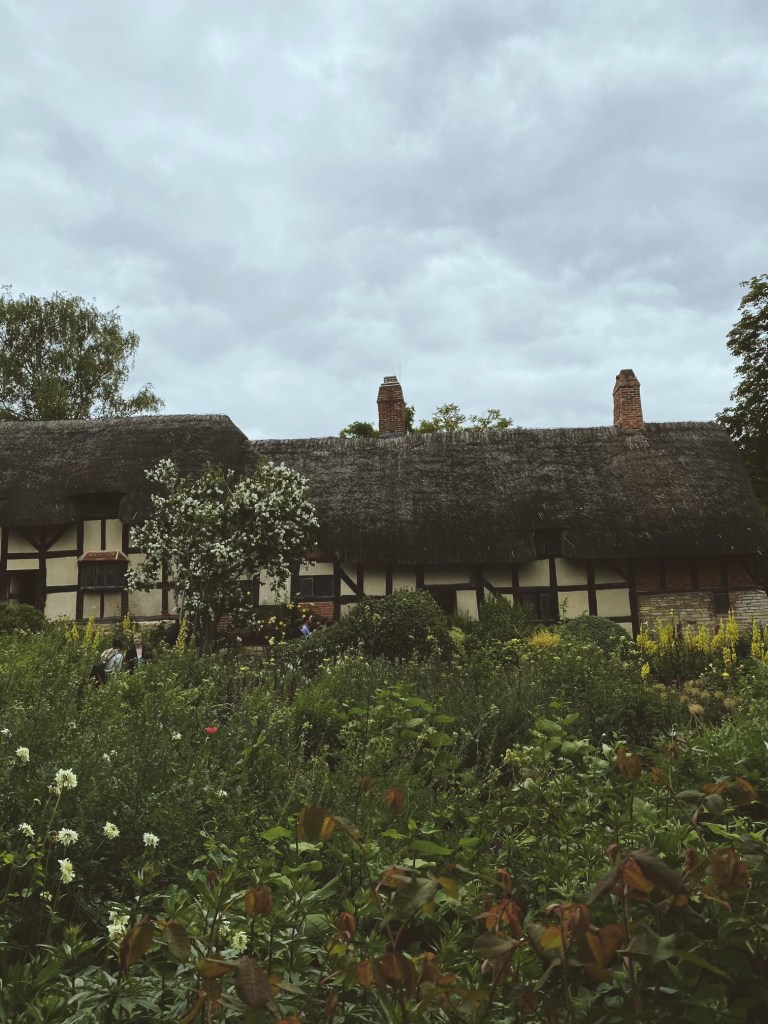 Stratford-upon-Avon is small…like really small compared to London. Sirens, though present, are fewer and farther between, the air is a little softer and less full of drifting conversations, and everywhere you go is Shakespeare and the smell of rose petals. It was absolutely lovely getting a chance to be out in the country for our last few days in England. Sometimes it’s difficult to remember that the authors you read are or were real people, but seeing the glove-maker’s workshop with tanning hides and the kitchens stocked with what one tour guide called “real imitation, genuine fake” food inside Shakespeare’s family home finally made it a reality: Shakespeare was a real, living, breathing person who worked within a small community, had a storied family, and spent his life with someone that he loved. Sidenote: I had no idea that Anne Hathaway was twenty-six and Shakespeare was eighteen when they got married. The tour guide also said that they were neighbors. As unsettling as that age gap is as someone living amidst 21st century cultural norms, I guess there’s something sweet about the fact that they grew up together. Shakespeare was just like, “her, that farm-girl down the road, I know she’s going to be the one.”