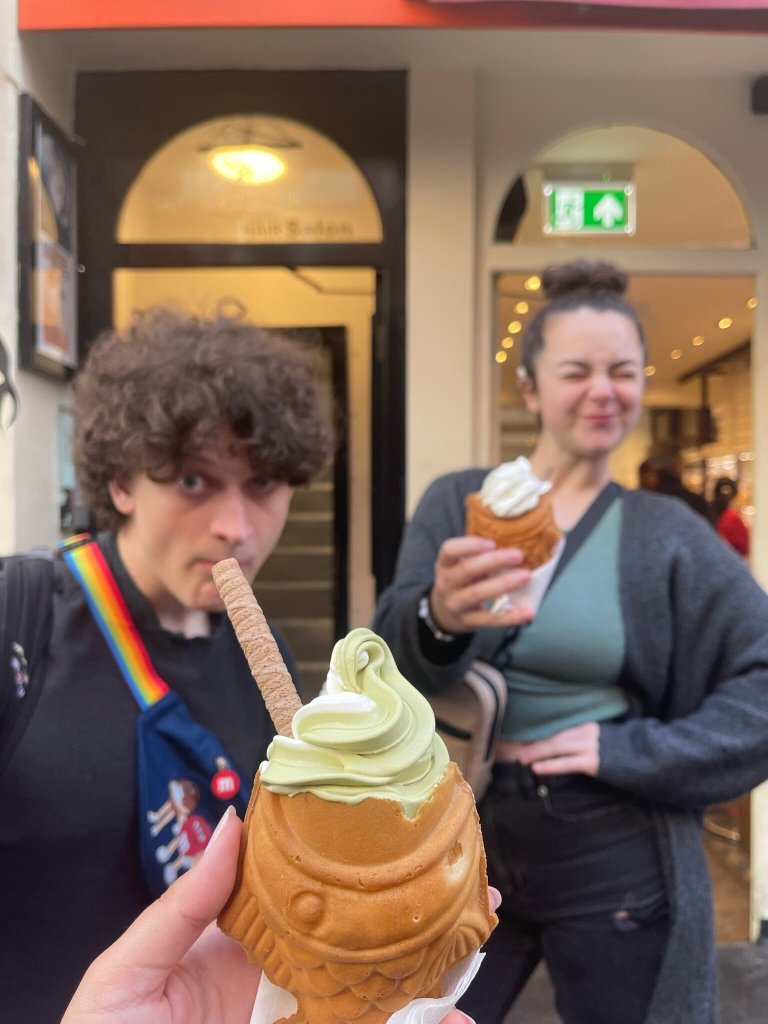 What we’ve seen so far has been beautiful, even if jetlag has made everything feel like a fever dream. Once we got to the hotel and settled in, a bunch of us grabbed food and had a picnic at Russell Square Gardens. The park was covered in beautiful flowers and the weather was perfect. One thing I really enjoy about London is that the air feels super clean. I was expecting it to be similar to NYC air and be smelly, but it was actually very fresh. I’m excited to spend time exploring outside. A few of us went to Chinatown, got taiyaki, and walked around and there was so. much. food. I’m excited to try it all with all of the friends I’m making and getting closer to.