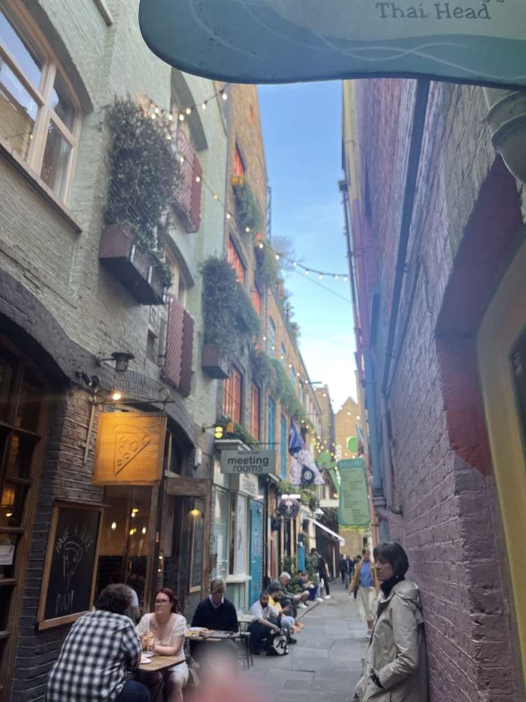 Leaving, there was a carriage playing ABBA, and a block away from that we listened to an older man sing Dancing Queen. I love ABBA and saw that as a good sign of things to come. Afterward, we walked back to the hotel rather than taking the tube and explored all the parts of London that caught our eye. There was a colorful alleyway with storefronts, parks with cute dogs, a closed storefront with medieval armor in the window, and so much more.