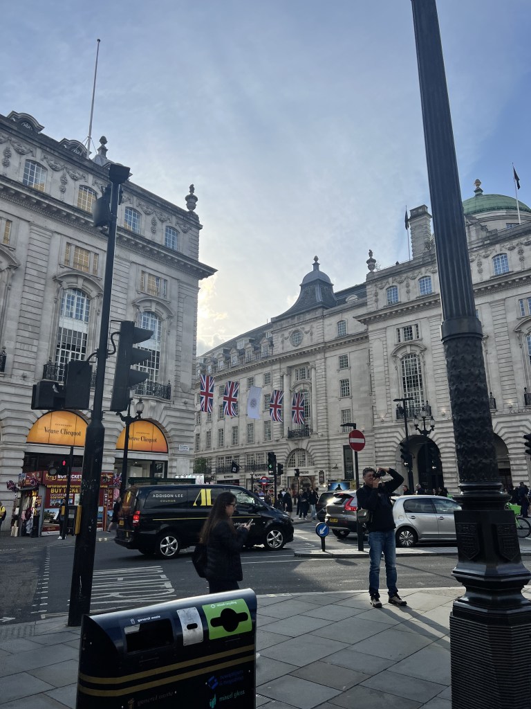 After we settled in, we decided to go out to grab dinner with some of our other peers. Out of all the places here we decided to go to a place named “Tortilla”, it’s like a very distant cousin of Chipotle. It wasn’t bad but it wasn’t the best. We got it to go and sat in Russell Square Park and had a picnic with everyone. Then we headed back to the hotel to meet with everyone and learn how to ride the tube. It wasn’t as hard to use/ understand as I thought it was. It was kinda of easier to navigate than NY. We went to Piccadilly Circus station and Leicester Square. We walked around for a while when we got there. We saw some really cool statues, lots of birds, and the M&M store. I ended the night riding the tube back with some others and hanging out in the park before heading back to our rooms