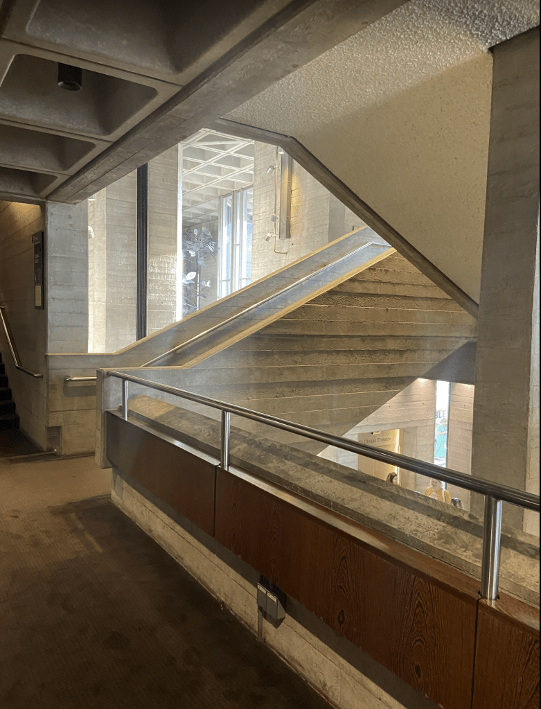 First off, the architecture of the building was lovely. It is a brutalist type of building made with formwork concrete. The exterior is layered rectangle spaces, while the inside has a fun wood-like texture. I was obsessed with looking at the individual components that made up this building.