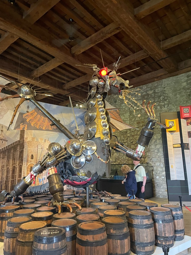 There were so many cool areas in the tower I think that the two that stood out the most to me were the armory and the strange makeshift dragon that as far as I could tell had no text with it. The armory was cool because 1.) all suits of armor were very impressive and intricate and 2.) there was child-sized armor for the princes and the idea of a small child on the battlefield striking down his foes was very funny to me (even if it probably did not happen.)