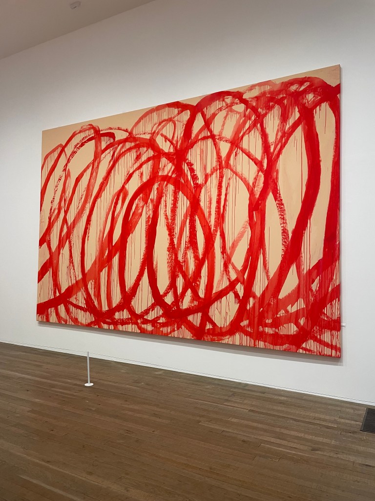 The second piece of art that I really liked was a 3 piece painting of what looked to be just red splatter paint by Cy Twombly, and the reason that I chose this is because it reminded me of my trip to NYC over spring break when I saw Sweeney Todd with my mom and aunt. One of the Sweeney Todd posters has the name of the musical with blood dripping down and I thought that they resembled each other quite a bit, I also think this one was so impactful for me was because it reminded me of a great time with family seeing a show that I love with the people I love!