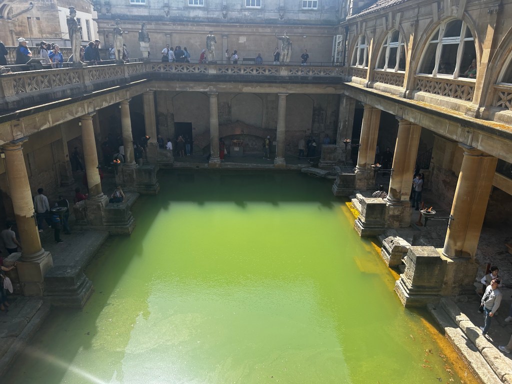 Yesterday, our group had the opportunity to take the train to Bath, England. Bath is home to many historical monuments, and the Roman Baths are one of many of them. The train ride to bath lasted for about an hour and half. It was very nice to look out the window and see the countryside of England. When we arrived in Bath I was relieved to visit a smaller city than London. Bath is significantly smaller with less road traffic. However, I feel as though the traffic of people walking around was much heavier than that of London. Perhaps I am wrong. Either way, it just felt like there were too many people for the little space that was available to walk around at. I also thought that there were more chain stores that we have in America rather than the locally owned little shops that London has. When we got to Bath I enjoyed a donut and coffee. Afterwards I visited the Jane Austen house. Jane Austen actually used to live in Bath and she very much enjoyed her stay there. The famous Mary Shelley also lived in Bath. Many people in our group visited the museum about her but I did not. I quite enjoyed the Jane Austen museum. It was a much shorter tour than I expected. A lady dressed up in Regency era clothing spoke to us about the Austen family and then we made our way through the museum. The museum had the original copies of her works as well as facts about her. There were even displays of clothing worn during her time. There was one fun part of the museum where tourists could dress up in dresses and bonnets and have their photo taken with a statue of Mr. Darcy. My favorite part of the entire tour though was the writing room. Here, they had notes of paper with a quill and ink to write with. After visiting the Jane Austen house, I finally met up with the rest of the group so that we could tour the Roman Baths. The water was very green and it was so beautiful against the brown stone of the building that surrounded it. The Ancient Roman Baths contain natural spring water which still flows in the River Avon. The main purpose of the baths was to allow the Romans to purify themselves. Most Romans living in the city went to the bath house every day to cleanse themselves. They used to put olive oil on their skin and then rubbed it with a metal scraper called a strigil. I was very interested in some of the many facts that I learned during my tour. For example, the Romans conversed with the Goddess of the Baths, Minerva. The Goddess Minerva was an integral element of the Roman Baths. People would visit the baths regularly to beg for justice from the famous Goddess Minerva. They would go as far as to bring her precious gifts such as jewels, and would also throw coins into the sink to ask for her blessing. The visitors would also ask the goddess to take care of their family and themselves. For those who have lost an item or have an item stolen, the Goddess Minerva was the ultimate destination. They would go and ask the Goddess to cause a miracle so that their item could be found. Moreover, the meeting with Minerva would guarantee that the thief would be punished! I also thought that it was pretty neat that the Roman baths are home to many precious items because of the Romans’ devotion to Minerva. Multiple things have been found in the Spring: brooches, rings, bracelets, vases, and more than 12,000 coins! They were all thrown in by Romans as gifts to honor the Goddess Minerva. Overall, I really enjoyed my trip to Bath. It was a nice change of scenery. I will admit however, I did not enjoy tasting the spring water that they gave tourists from the fountain. I tried it with all of my friends and we all gagged at the taste. The only way that I can explain it is that it tasted like the smell of Easter egg dye water. I actually felt quite queasy after. To be honest, I was hoping that I would get violently ill from the water so that I could sue the Romans and be filthy rich for the rest of my life.