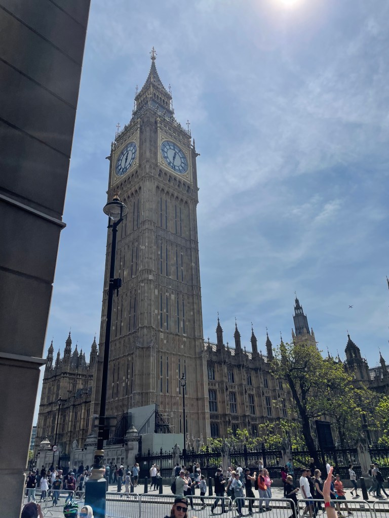 Rolling back the tape of this trip, I want to talk about my solo river walk across the Thames. On Sunday, May 28, I began my free day with some fluffy Japanese pancakes from a restaurant just a couple streets up from my accommodations. Then for the main activity of the day, I took the tube down to Westminster. It was really cool to see the iconic clock tower up close. Fun fact: Big Ben is the bell inside the clock tower not the clock itself. At this point, I crossed the Thames to the south side and just began walking. I passed the very crowded former county hall turned aquarium and Shrek’s adventure as well as the famous London Eye as I headed west along the South Bank. Past this area, the crowds thinned out. There were lots of family orientated activities along the river for the weekend. I found a multi-purpose building which caught my attention with a bookstore and luckily it held a bathroom (or toilets as they say here, across the pond) so I could comfortably continue my journey, that had no destination in mind. Right before I came across the National Theatre, I discovered tables of books for sale. I spent a little time perusing before I continued walking. I loved getting another look at the National Theatre; it is such a unique building, not necessarily conventionally beautiful but I love the design, nonetheless. Further on, I came upon the Tate Modern (which I wrote about a couple days ago), the millennium bridge, and Shakespeare’s Globe Theatre where I had seen A Midsummer’s Nights Dream the day before.