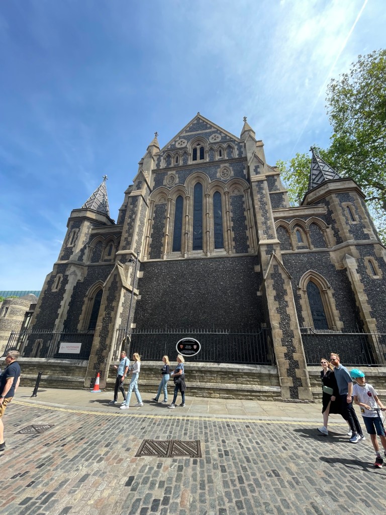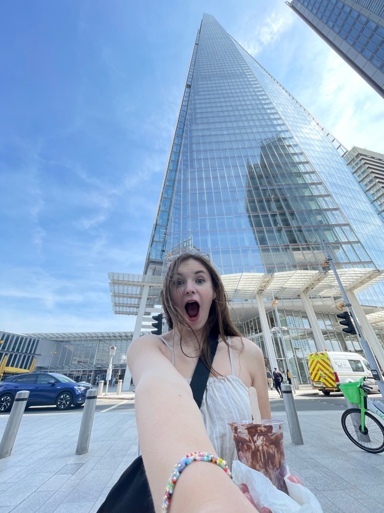 Circling back to Sunday, after securing my strawberries, I walked to the Shard which is a large glass building. On the way, I happened to stumble by King’s College which has a lovely courtyard. The Shard was a quick stop for me and while a less conventional tourist stop, one I had on my list for a couple years. “Why?” you may be asking. Because in The Bells of St. John, the Doctor (Matt Smith’s 11th Doctor to be exact) drives an antigravity motorbike up the side of the 310 M building (1017 ft). I even timed my visit to this location for the day after rewatching this series 7 episode.