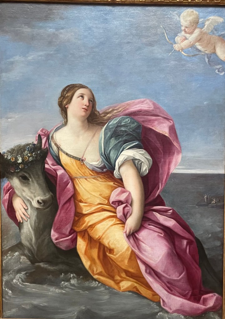 The first piece that truly caught my eye was “The Rape of Europa” painted between 1637 and 1639 by Guido Reni (Europa is one of the many women from Greek mythology who caught the eye of Zeus. To “get it up” with Europa, Zeus transformed himself into a bull and transported Europa from her home in Asia Minor. And yes, Europe is names for Europa.).