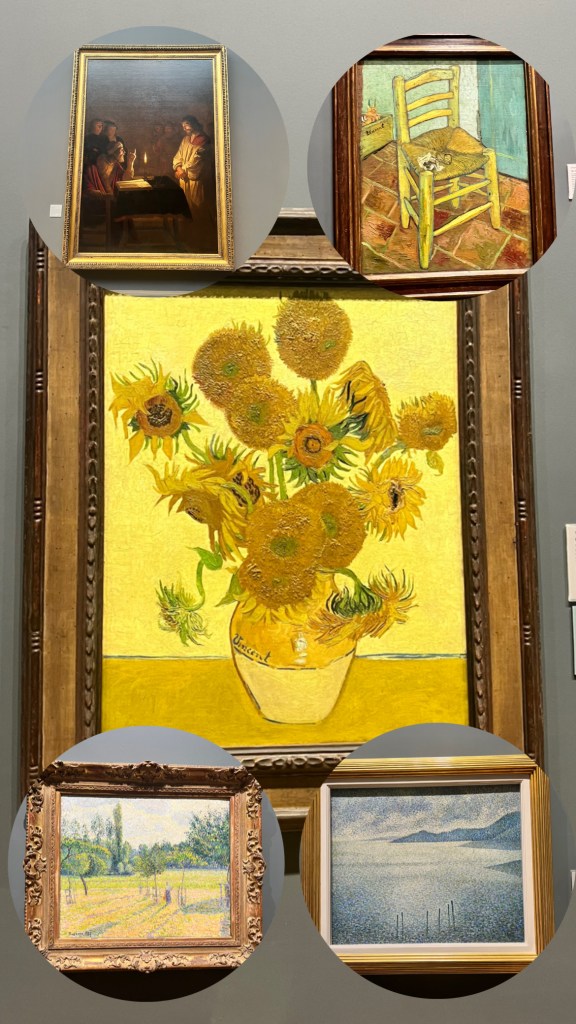 Long Title…but yesterday we went to the National Gallery. Upon entering I was sort of dreading it. I just don’t think art museums are my favorite to go to, but I will say I soon got excited. When I entered I saw many boring portraits and then decided to search up what famous painting were in this gallery. To my surprise it said Van Gogh’s Sunflower painting was being displayed in room forty- three. Back in February I saw The Starry Night at the MoMA in New York, so I was stoked. I was soon on a mission to find this painting, I’ve read so much about it in elementary. I found a map and went on my journey to find this room. It took a while because this gallery is so big, and most numbers of the rooms weren’t being displayed. This painting gives me so much joy; Van Gogh said that the reason he chose such bright yellows is because it reminds him of hope and friendship.