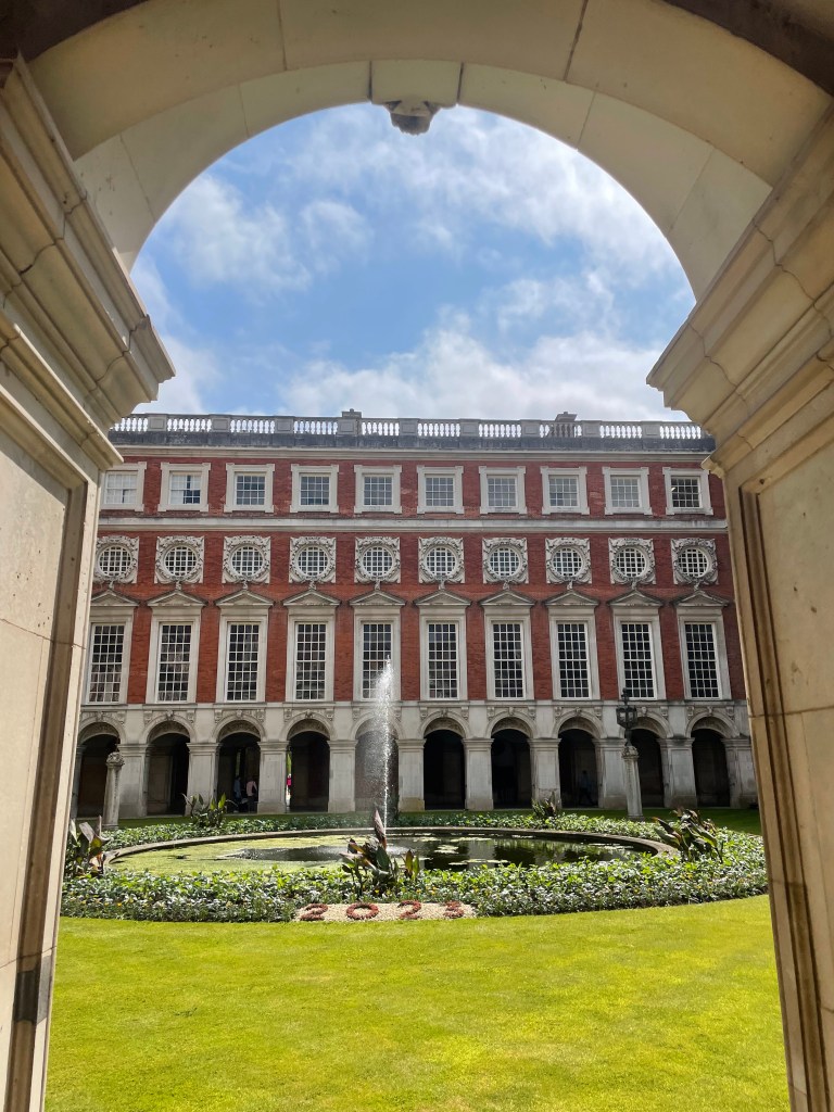 June 7 (a.k.a. one month from my nineteenth birthday) brought another day trip. We ventured out of London to Hampton Court Palace. The Palace was first used by Henry VIII after taking it from a duke he had a falling out with. Henry VIII redid the Great Hall in honor of his second wife Anne Boleyn. There are beautiful gardens throughout the grounds including a courtyard fountain which had been landscaped for the recent coronation of Charles III. My favorite room was off of this courtyard: the chocolate kitchen. I don’t remember if it was James I or II but one of the King James had a special kitchen for chocolate which was a special drink for the aristocracy of their day. And may I just say, I definitely approve of a special chocolate kitchen.