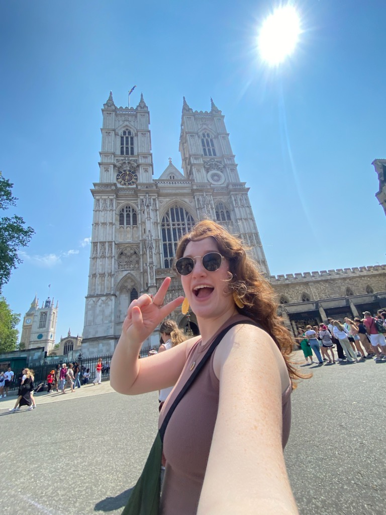 Today we toured Westminster Abbey in which we were told to focus on the graves we walked on and the statues we looked up at. Westminster Abbey was a huge structure that housed a place of worship, a royal wedding venue, the seven-thousand-year-old coronation chair, and over three thousand tombs. The building was surrounded by beautiful stained-glass windows and extremely detailed architecture. There were over a hundred things to look at no matter what room you were in or which angle you were looking at. As I stepped across the uneven stones that made up the floor, I couldn’t help but feel uneasy at how many graves I was walking over. Westminster Abbey housed thousands of well-known memorials for royals, actors, activists, academics, poets, and even commoners. The memorials that caught my eye were those of Nelson Mandela, George Eliot, and Charles Dickens. Mandela is buried in South Africa, but there is a memorial stone in the main room of the Abbey that was put there in 2018 in remembrance of him. It has the words forgiveness and reconciliation surrounding his name to commemorate all of the trials he had to face as an activist leading the apartheid. George Eliot, the pseudonym for popular author Mary Ann Evans had a memorial stone within the Abbey. As one of my favorite authors and an iconic representation of the perils of sexism and the power of women in the 1800s, it was inspiring that she was recognized. Charles Dickens was actually buried in Westminster Abbey in what is called Poets’ Corner. His grave was meaningful to me after growing up surrounded by his literature on all of our bookshelves at home. His name is one of the biggest names in Poets’ Corner and he was buried in Westminster as more of a spectacle for the public. Seeing so many big names and iconic statues all in one beautiful building was so surreal, there wasn’t enough time to look at everything and everyone!