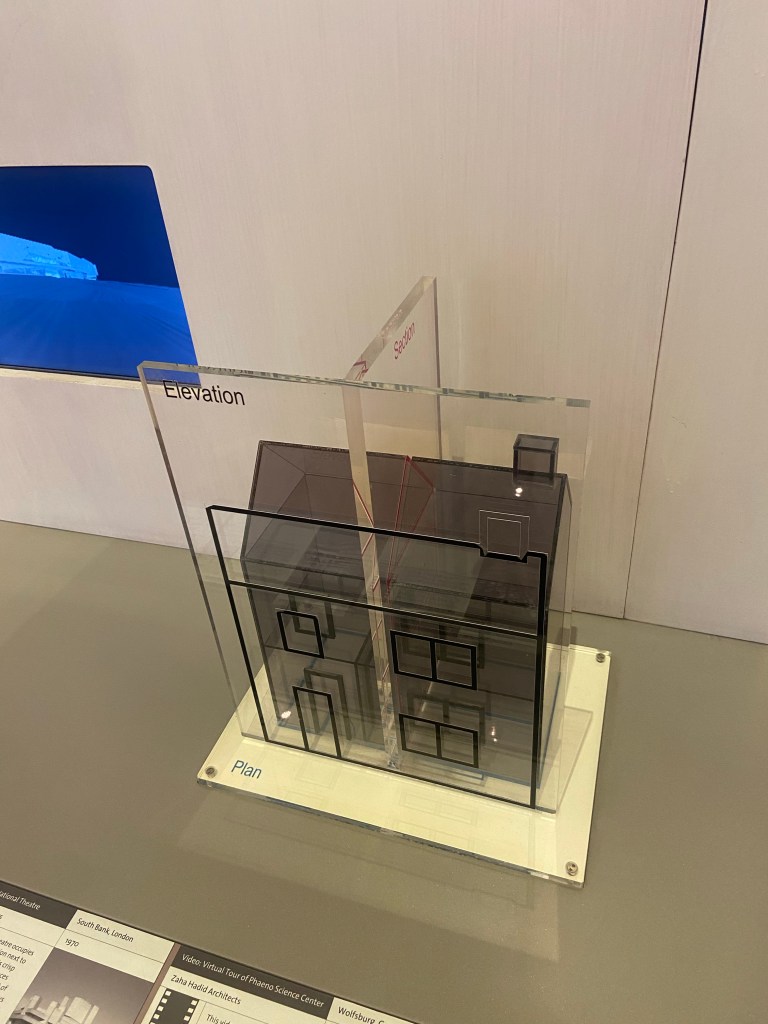 Once I finally made it to the Architecture exhibit, I found a really simple model showing the difference between a plan, section, and elevation. On their own, each drawing tells part of the story, but when you start layering them together, the fuller picture is created. This idea became apparent while I was watching Back to the Future. The set was captivating mostly because the designers did such a wonderful job of layering details, physical elements, and projections that it made the stage feel full and the story seem real. I look forward to one day implementing these same strategies to my designs.