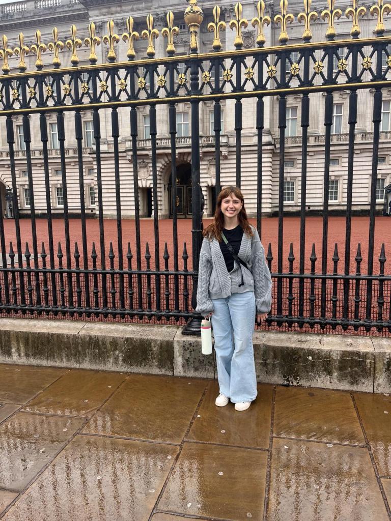 Our excursions included Russell Square, Leicester Square, and Piccadilly Circus. I was sad that Piccadilly Circus did not include an actual circus. I was also a little upset with myself because I forgot my umbrella. Thankfully, the Weather Gods were on my side and it only spit on us a wee bit. Moving along, we saw a massive M&M store! I mean, it was huge! We also saw some restaurants from across the pond which include: Burger King, McDonalds, and Fridays. I got my eyes on Fridays, their beyond burgers are delicious. We stopped by Buckingham Palace as well. King Charles was actually at the palace at the time and we knew this because the Royal Standard flag was flying on the building. Courtneay is our British Royal go-to, so she was able to tell everyone some of the little quirks! We threatened to call the Hogs to get King Charles to come out and say hi.