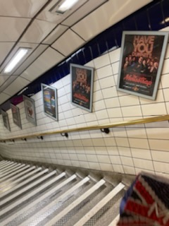 The very first day, we learned how to use London’s tube system. This is the main way people travel around London. It is possible to get to many places on the tube. To ride the tube, I had to buy an Oyster card. Everyone must use their Oyster card to enter and exit the tube stations. The tube ran underground and had to be accessed via elevators, stairs, or escalators. The escalators and stairs both had advertisements for plays and musicals going up them.