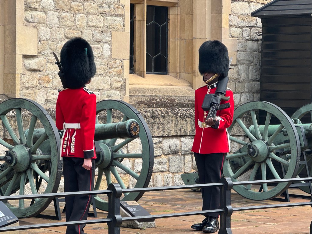 Yesterday we visited the Tower of London. I had been to the Tower of London and remembered a few things but not much so I was excited to see everything again. I first went to the Crown Jewels which, to be honest, I didn’t find all that interesting. However, I did find the other parts of the tower interesting. I especially liked the White Tower and the Imprisonment at the Tower section. The White Tower displayed tons of unique armor and weapons that were worn or used by knights or royalty. The Imprisonment at the Tower was interesting because it detailed some of the people that were imprisoned in the Tower of London. One of the people imprisoned there was Thomas Overbury, a poet most known for his poem “A Wife”. He was imprisoned because he declined an offer from James I to be an ambassador. This offer was seemingly a set up from his former friend Robert Carr. Thomas later died in the Tower of London from his food being poisoned and after a trial both Robert Carr and his wife were found guilty in the plot to kill Thomas. The crazy part is this is all because before Robert was married to his wife, she was having an affair with Robert and Thomas told Robert that it was a bad idea and that she had a reputation. Also at the Tower of London were lots of ravens and it is said that if one of the ravens escapes then the monarchy will fall. It’s very sad though because of that belief the ravens’ wings are clipped and they are unable to fly. However, the ravens are also seemingly not afraid of people so you are able to get really close to them and take good pictures, which I did. Lastly, when we visited Buckingham palace the royal guards were not wearing their red outfits and big hats which disappointed me, but thankfully at the Tower of London they were.