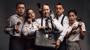 Today we saw Operation Mincemeat and it was terrific. The music, lighting, and choreography was amazing. Several scenes the choreography was so good that I was baffled at how only five actors could pull it off. The comedic timing of the script and delivery of the lines made the entire performance an attention pulling spectacle. What really amazed me the most was the sheer versatility of the set. The actors used the entire set like a giant swiss army set with hidden doors, an entire lighting structure, and a foldout staircase. I had to pull my jaw off the floor every time they introduced another function to what I had first thought to be a regular flat wall. Several scenes in the choreography were mind blowing as any interaction with more than one phone ended up being hilarious and reminded me of the three stooges but the preciseness of it really impressed me. The music and singing for the production was also quite well done as I was bouncing along in my seat the whole time through every song. The actors’ performances were nothing to sneeze at either as there were some very compelling emotional scenes that were delivered beautifully. The song regarding writing the letter was amazingly sung and brought a healthy dose of seriousness to this humerus production. Essentially I think this play is worth watching to anyone looking to have a wonderful time.