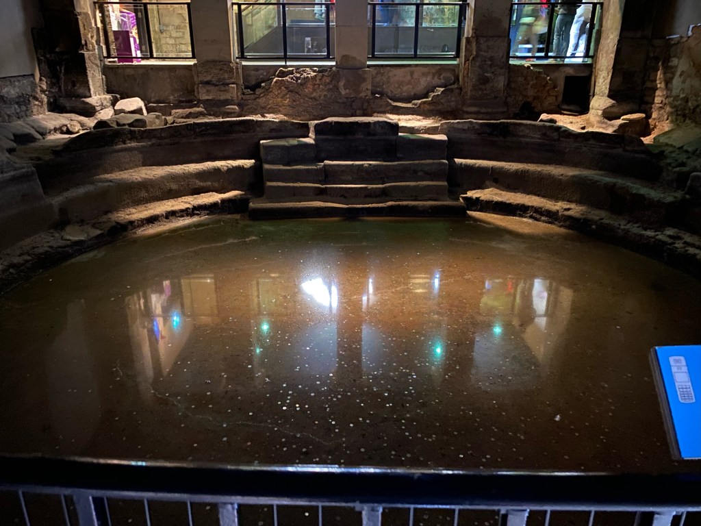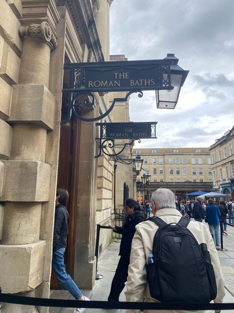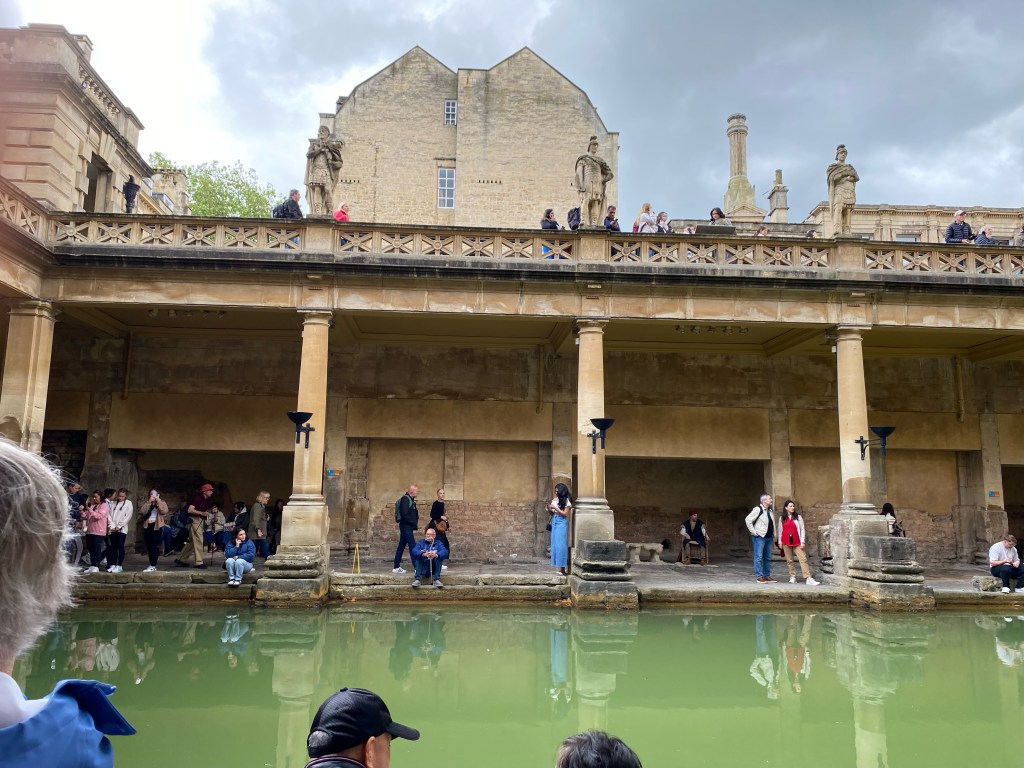 Yes, I did take a shot at Bath, England. Specifically in the Roman Baths. Why? Well, I was parched and needed a sip of the good and magical stuff. What is the good and magical stuff? I am glad you asked! I took a shot of the Roman Baths spa water along with Killian. We clinked our little paper cups and drank the warm and metallic liquid. The belief is that the hot springs have curative powers. Do Killian and I believe that? Maybe… The water is full of minerals and one can tell. There is an overwhelming iron smell that drifts through the air and the taste of the water was definitely on par with the smell. A look was exchanged between the two of us once the after taste settled in.