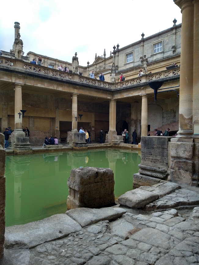 The first myth was the more believable of the two, oddly enough. The premise was that Bladud was the heir to the throne, but was exiled due to his leprosy and became a swineherd instead. One day, when tending to his pigs, he noticed that those who bathed in a specific spring were devoid of scabbing and illness. He bathed in those springs as well, was cured of his leprosy, and went on to become King after all. The second was that Bladud traveled to Athens for his education, and there he learned magic, which he then used to vest the Bath baths in magical power that allowed it to heal, as the Romans believed it did. I obviously do not believe either of these things to be true, but I personally find the mythology that people use to justify their beliefs to be so wonderfully intriguing.