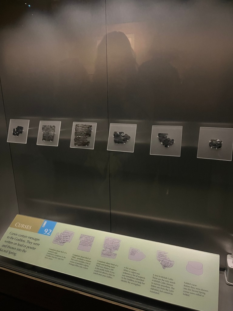Not only was the goddess Sulis Minerva worshipped for healing but also known for her power to punish injustice. People would inscribe curses on metal sheets against specific people who committed petty theft. If the items were not returned, the worshipper would gift them to Sulis herself, because it would be like they had stolen from her. I loved that she was known both for healing, but also punishment!