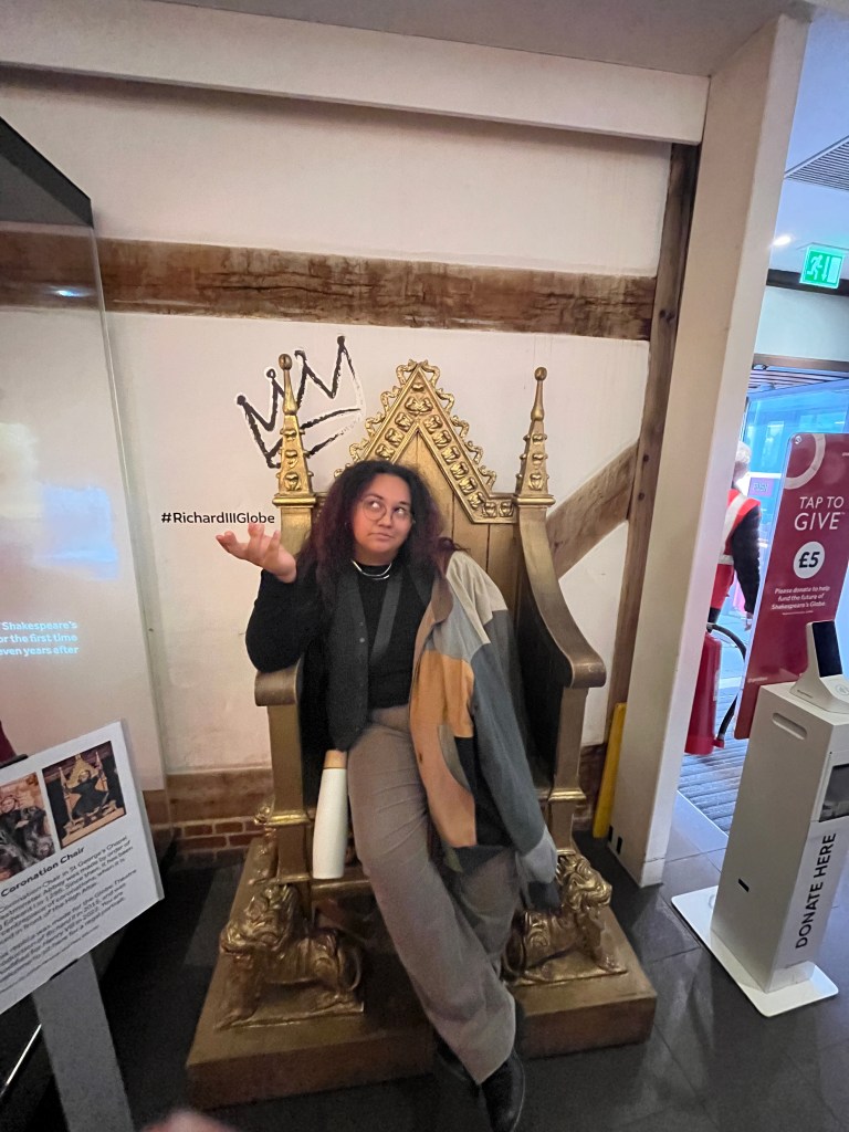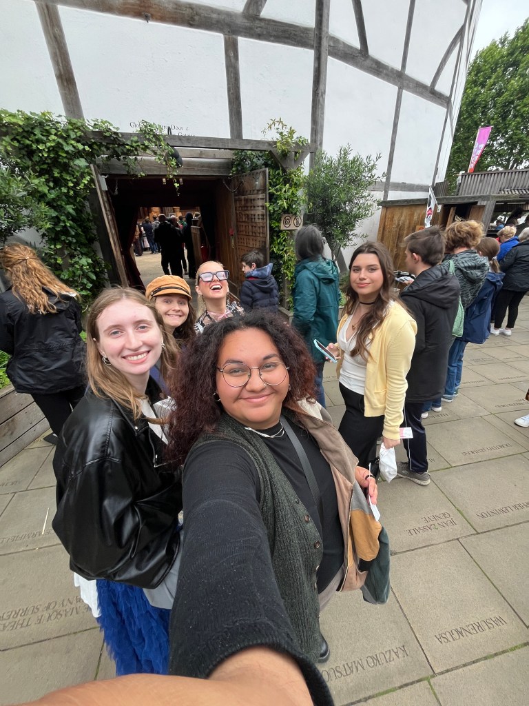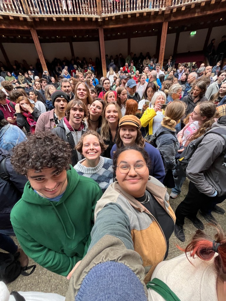 Watching Much Ado About Nothing, at Shakespeare Globe was lifechanging. I realized that I wanted to make theatre like that. It was so interactive, and funny, and I laughed out loud! Like an actual LOL in real life. I understood what they were feeling and saying, even when I couldn’t comprehend the words that came out. The audience interaction was such a huge part of why it was such a success. It didn’t feel like the actors were bound to the script, but just living truthfully. Their performance reminded me of why I love acting. I love the interaction and feeding off the audience to create those magical moments. Like is this what live theatre should be? The dancing and singing during the show were one of my favorite parts. It was so lively and beautifully choreographed. When the father of Hero, Leonato, sang his song and then included everyone in the audience to sing it with him. We started singing and it felt like we were all connected. I could not stop smiling, my mouth actually started hurting. I felt like I was part of a community, and we were all experiencing something so magical. That moment in that time could not be recreated, and I got to enjoy it with my amazing peers.