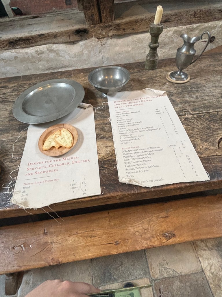 Starting from the entrance, it felt like walking through a recreation of an old medieval castle town, despite just being the kitchens. The narrow cobblestone alleyways and the decorative wheelbarrows filled with bags of grains helped to create the medieval living atmosphere, while pictures of actors in time-appropriate garb put up in the windows of buildings and walkways made the location feel like a vaguely and unintentionally scary tourist-trap. Walking through the kitchens kept this recreation feeling at a maximum, with the walls covered in writing and images depicting the kinds of meals that would have been served in the palace and the ways they were prepared or laid out on the table. It had tons of prop foods and decorative cookware placed around to help set the scene, and all in all it made it a very informative, if somewhat inauthentic, display to walk through.