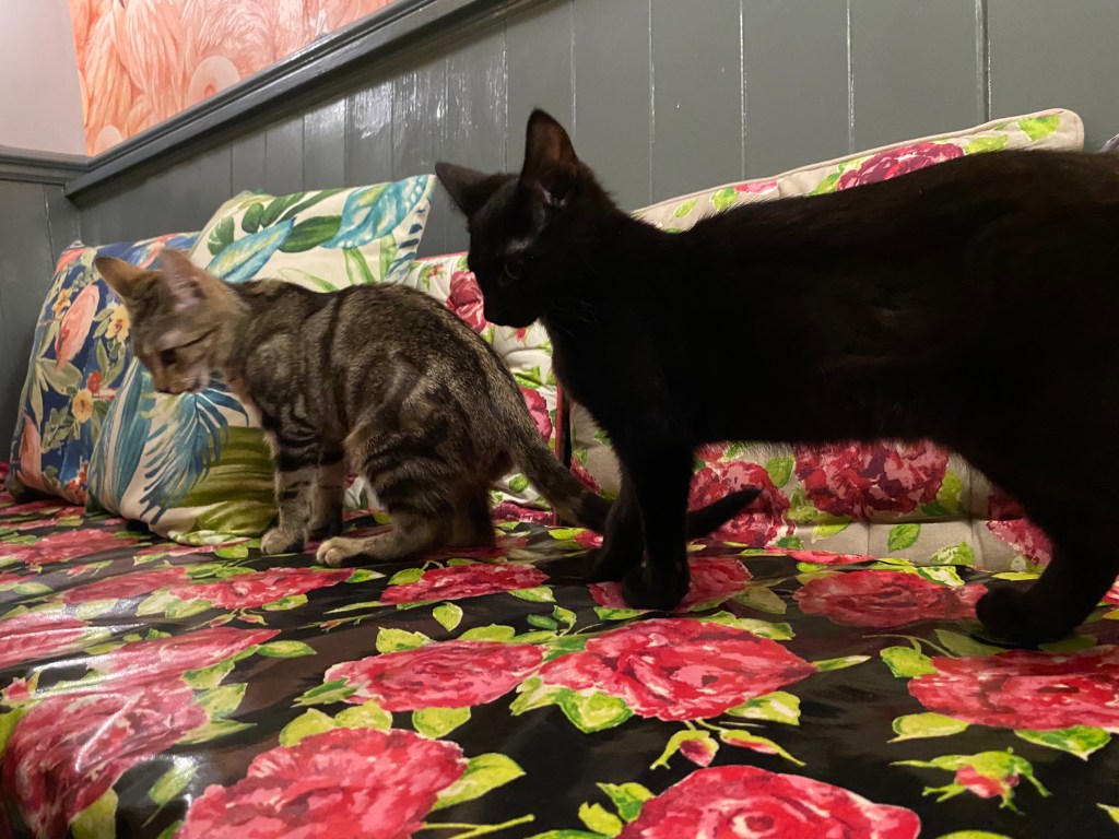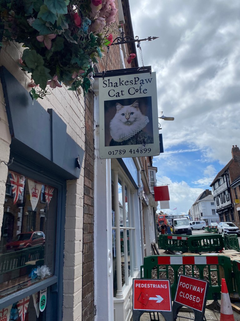 This town and its contexts are quaint and historic. Everywhere you look, there is a tutor building or a building that seems it was built when Jesus walked amongst the streets. I am only half joking… There are Shakespeare themed taverns, distilleries, and even a cute little cat cafe. You will definitely be hearing about the kitties in the next paragraph. One of my favorite things about this place is how beautiful the buildings are. Tutor buildings do not feel real to me. They are so picturesque. Getting the chance to step into one for the first time yesterday was a little underwhelming because the prettiness ends at the outside. The insides are small, creaky, and just old. Very cool, though!