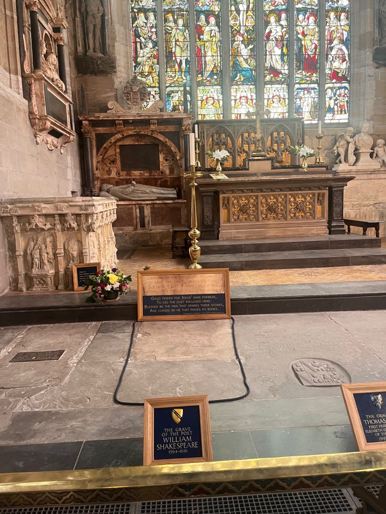 We have spent the last few days in Stratford-Upon-Avon, and it has been an incredible experience and a great way to end the trip. Life slows down a lot in Stratford, but my excitement did not. There was so much to see, despite how small the town is, and I love it here! Coming from the hustle and bustle of London, it was a big change to see just how small and secluded Stratford is. You can walk pretty much anywhere, there are cute shops and lots of pubs, and of course, Shakespeare things are everywhere!! We got to visit Shakespeare’s birthplace, his New Place, and Anne Hathaway’s Cottage. Each of these places were steeped in history, and it was fascinating to see where the man himself grew up. One of the gift shops we visited had a deck of cards that had “Shakespeare’s Flowers.” On the back of the deck, it talks about how you can so clearly see the way the nature in Stratford inspired his writings, and that could not be more true. There are beautiful fields and farms, full of different flowers all over the city (not to mention swans everywhere!!), and I could see how Shakespeare would be inspired to write about nature and why he was so good at it after seeing the place that raised him. He had no shortage of inspiration to take from the beautiful place he lived in.