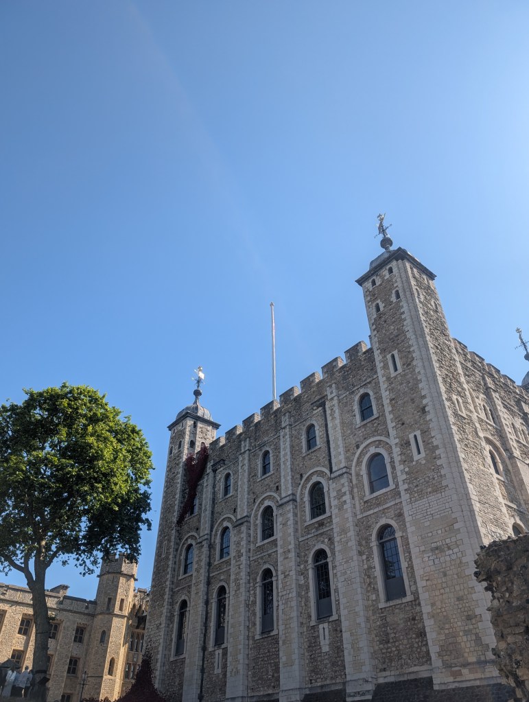 The first thing we saw was the Crown Jewels. Photos were not permitted inside, but I doubt that they would have been able to adequately capture the beauty in there. There were a variety of wonders inside, from crowns and other jewelry to the fanciest golden tableware I’ve ever seen in my life, to the items worn by King Charles III at his coronation. It was stunning how the light reflected off all the tiny little gems, creating shimmering rainbows all across the crowns, something that can’t be seen in just a photograph. Something else that stood out to me was the fact that some of the items inside were still being used occasionally for ceremonial purposes. It was rather humbling to look at the objects, older than the United States, that still had a purpose beyond just being displayed.