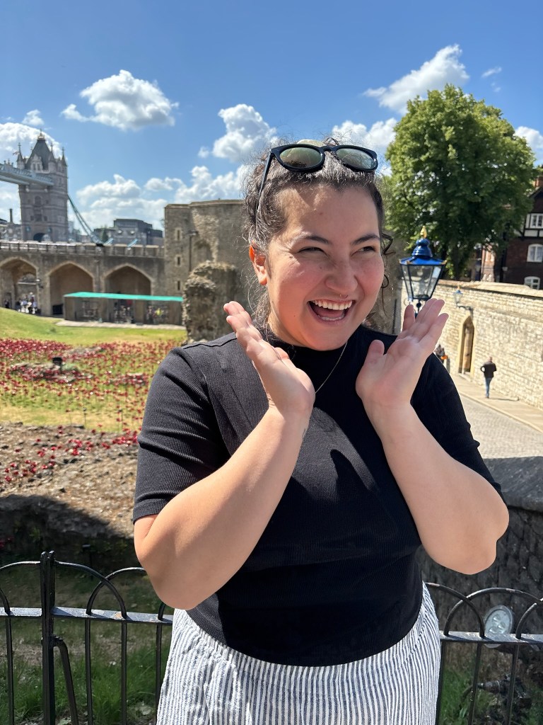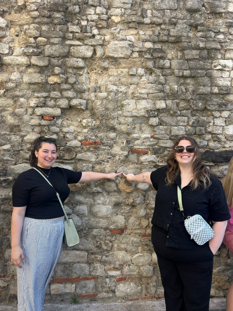 The London adventures continue, this time at the Tower of London! Coming up to the Tower was truly like going back in time. The first landmark we came across, before even entering the Tower itself, was the London Wall. This wall dates back to the Roman city of Londinium and is estimated to have been built around 200 CE. Seeing something that was built nearly two thousand years ago that still (partially) stands to this day is an incredible reminder of just how much humans have accomplished throughout our history. As someone who loves to look to the cosmos (in both an academic and spiritual way), I often think of how humanity is really a blip in the history of the universe. However, being confronted firsthand with something that has withstood so many wars, rulers, and lifetimes truly reminded me of just how much humanity has done in the relatively short time we have existed. Claire and I even touched the wall! It felt a bit scandalous; we are both avid museum-goers, so touching it felt almost like we were breaking a rule.