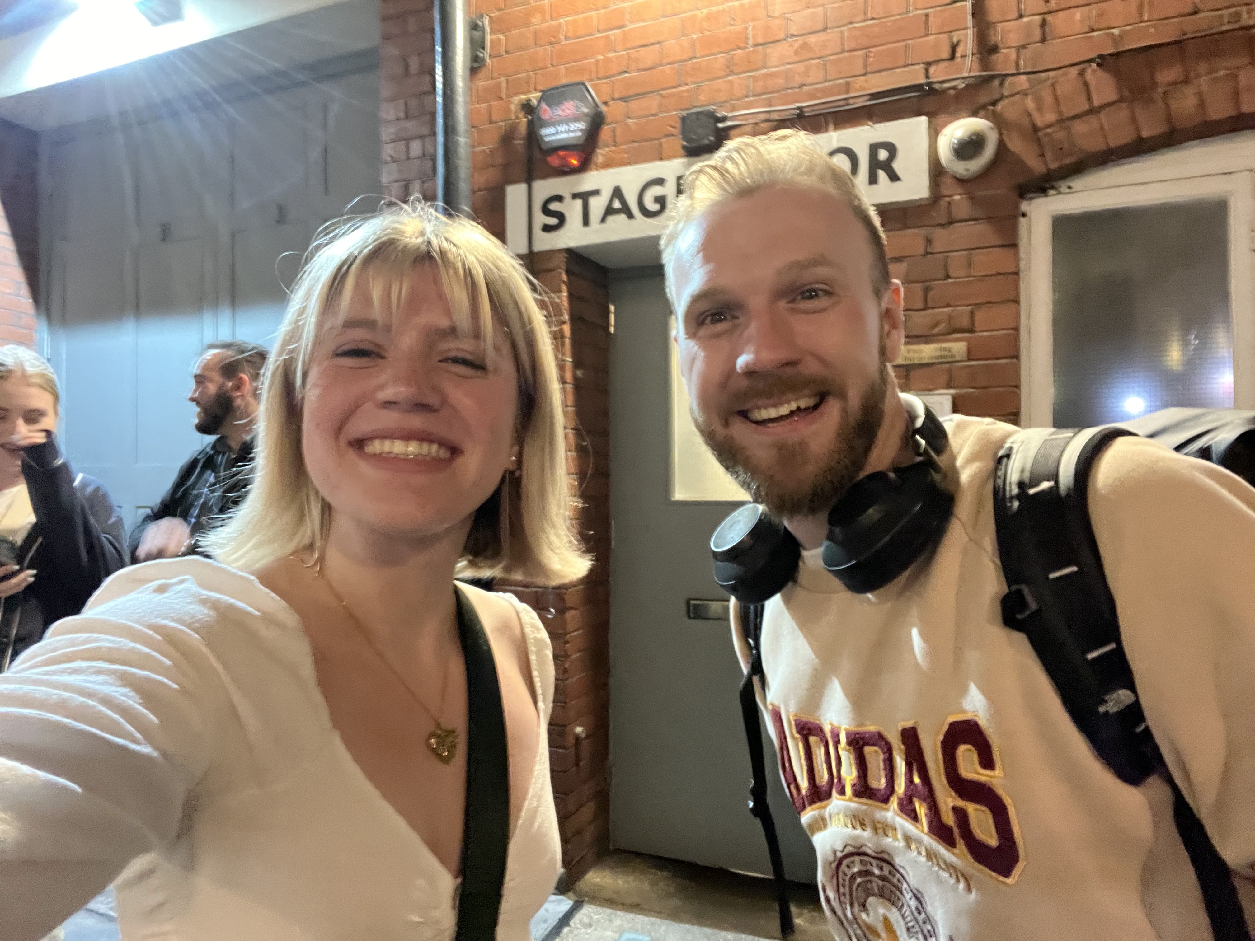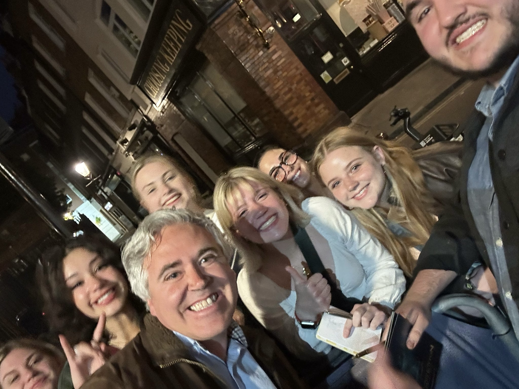 After the show, a lot of us waited at the stage door to meet the actors. Not everyone came out, but the ones that did were happily approachable. Clare Foster (played Elowen) immediately went into caring-mother mode when she came out and saw all our tear-stained, puffy faces. Jack Quartan (played the accordion and a stranger) stayed and talked with everyone the longest and gave us a piece of advice too: “when someone pushes you, fall over.” We also lucky met the composer wh0 was kind enough to take a selfie with us before he had to run to catch his train.