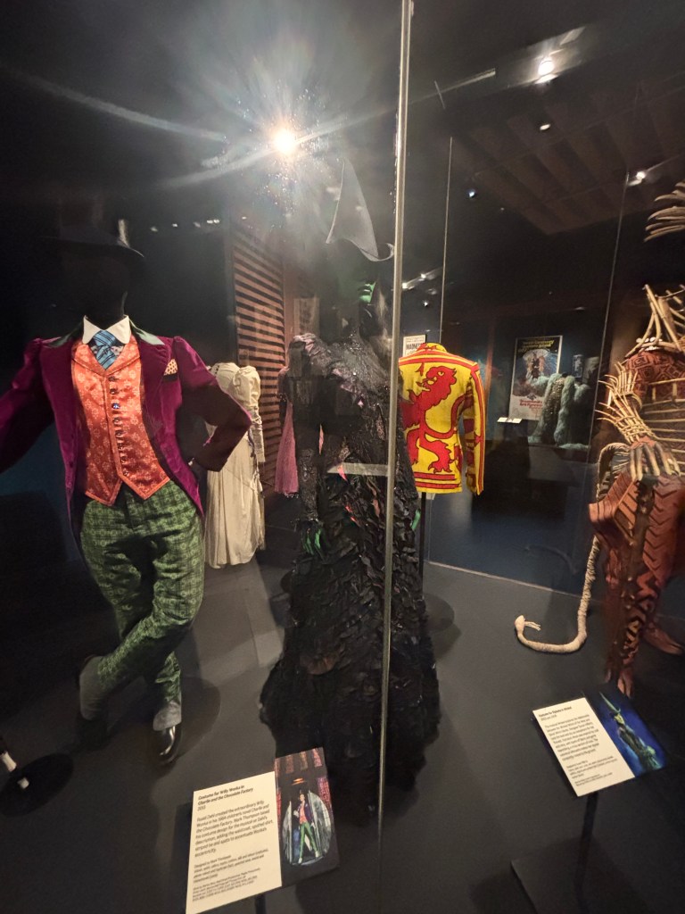 For this blog post, we have to choose an artifact from the museum and connect it to a show that we have seen and/or studied. So for this assignment, I have very predictably chosen the act two dress that Elphaba wears in Wicked. If you know anything about me, you know that I LOVE Wicked. Like an abnormal amount. So when Shawn told us that they had one of the Elphaba Act Two dresses, I was immediately on the lookout for it. When I found it, tears immediately came to my eyes, and I kid you not, I just stood in front of it for like five minutes. But I digress, we get it, Reece loves Wicked…we knew this. Moving on.