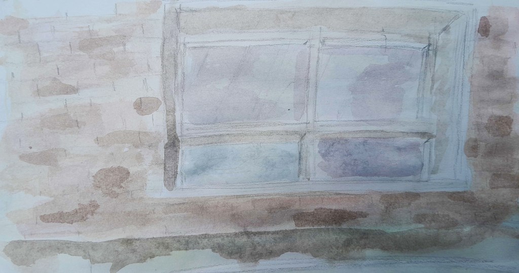 As for my art obligation (Self-imposed, might I add. Why did I do this to myself.) I only have a little watercolor study of a window to offer. It was quick, it was messy, and it’s NOT accurate in any way. Art is hard, man.