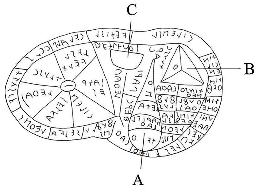 About midway through my journey touring the baths and exclusively listening to the blue numbers, I realized yet again that I have free will and could listen to the audios for children. And boy oh boy was that the right decision. The man in this version sounded much more enthused to be telling me neat little facts, and not to be dramatic or anything, but I’d probably enlist to fight in some war if he asked me to. At one point he informed me about some stone with a man’s name on it. I don’t specifically recall what role the man had in society (my brain wants to say priest??), but I remember that people came to him to request that he look for signs and predict the future. He also looked at animal entrails to tell the future, which is the most fascinating thing ever and I genuinely cannot believe I’ve never heard of that before. The proper term for this practice is Haruspicy, and it’s unfortunately a little too vague for my taste. By that, I mean I wanted to find some sort of academic source that explored what exactly was looked for in certain organs and what that meant (and I mean down to each vein size and discoloration, but a decent amount of articles that I read just vaguely covered this and lamely answer the question with “the Haruspex’s gut feeling”. That’s not nealy enough information! Anyway, it seems that most of the predicting was determined from the presence and shape of the processus pyramidalis (B) and the processus papillaris (C). If the processus pyramidalis was missing, that was interpreted as a bad omen. A duplicate of either of those protrusions, however, indicated a promise of prosperity. Isn’t that neat?
