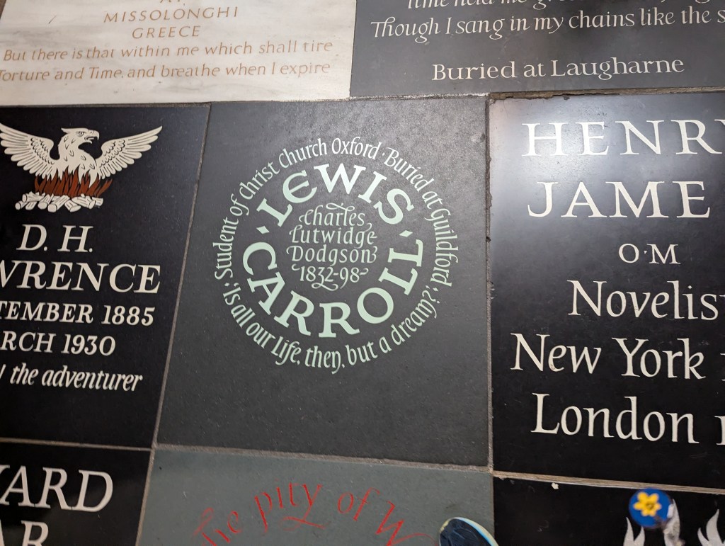While looking through the plaques commemorating these dead historical figures the one that stood out to me immediately was Lewis Carroll, most known for writing Alice in Wonderland and Through the Looking Glass. His real name was apparently Charles Lutwidge Dodgson and was a highly religious man, which may be part of the reason he was given a plaque at Westminster aside from his renown. Upon doing further research into him I discovered that major details of his personal life, specifically relating to the Alice books, are still wrapped in mystery. The biggest detail of his life that is still greatly debated is his relationship to the girl who allegedly inspired the alice in the books. Charles was friends with the family of the dean of Oxford college, being close with him, his wife, and his children, one of them being Alice. This Alice is also the first person he told the story of Alice in Wonderland to verbally, and encouraged him to write it down. Despite having the same name, Charles refused that she was the inspiration from the book’s character, and there has been no strong evidence to the contrary other than the superficial. It was alleged by some that he had an inappropriate relationship with Alice, and that he may have been a pedophile. This idea is backed by the fact that a large portion of his photography had young girls as the subject, and in some they were not or partially not clothed. When I read this I thought it was pretty damning evidence, but some scholars argue that at the time it may have been viewed as a common practice and that child nudity was supposed to symbolize purity, though this point is still debated. A large part of the reason it is hard to come to a conclusive answer to their relationship is because of how private of a person he was, and that large portions of his diaries and photography were destroyed by unknown people, although it is presumed that part of it was his family trying to keep their name in good standing.(I recognize I went off on a little bit of a tangent I got a bit swept up in the research) This mystery and his possible troubling relationship with children makes his legacy very confusing, but his work in the creative field can not be ignored