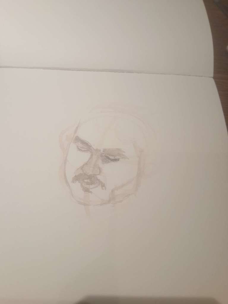 Actually, if for some reason you’re interested in seeing my weird process for this one, I took photos along the way. You really do have to live by the saying “trust the process”, because the first photo is genuinely the most unpromising start to a portrait I’ve ever seen.