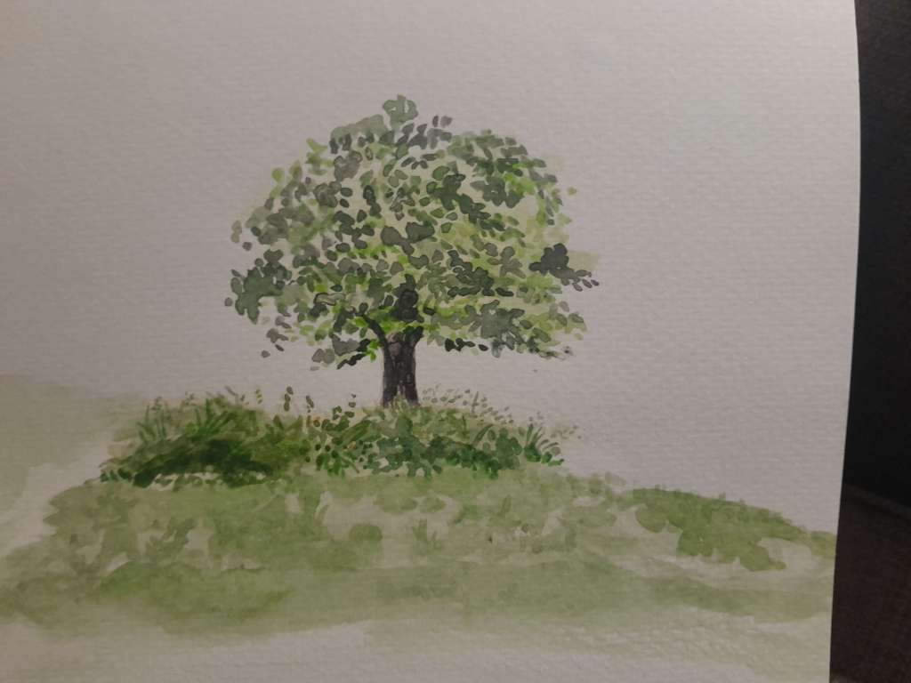 I consider the landscape one to be unfinished, and I’m rather unsatisfied with it, but I learned a LOT from it so I can’t really complain. I dislike the tree, but I actually know what I would do differently next time. Instead of dotting every leaf like I did, I would probably render the leaves a little differently. More subtle?? I don’t know, I can see it in my mind but cannot for the life of me properly articulate it. I also really like the various dots, lines, and shapes of colors I did to replicate the bush. It almost looks like there’s a bit of depth to it? I think next time I paint a landscape I’ll play around with a similar technique, but go about it more carefully so it’s hopefully not as messy.