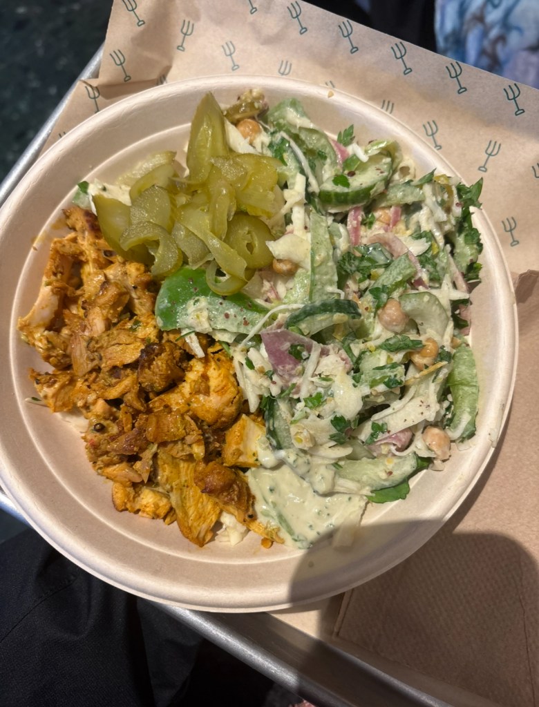 The next market we visited was Camden Market, where I split some Masala fries from the famous funky chips with Tucker. THESE WERE SO GOOD. And worth the hype! If I had ever gone back, I would’ve gotten a small for myself and made it my only meal there. I saw on a gluten free guide that there was poke in Camden market, which is my favorite food. About an hour after the chips my blood sugar started to drop and everyone had to trail a very grumpy me till I found the poke. Spoiler: poke made by British people is mid. It had to do for the time being though, lest I bite someones head off.