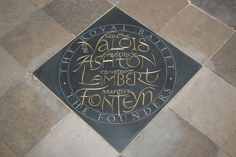 The fine gold lettering of the memorial stone caught my eye. At first, I assumed that the sentiment was dedicated to a singular person with a very long name. But upon further investigation, I came to find out that the memorial is dedicated to the first four founders of The Royal Ballet. The fine, spacial design of the letters themselves were meant to represent movement to commemorate the founder’s works.