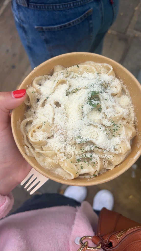 At other markets, I noticed that foods like Thai and Indian were available at every other stand – and I loveeee both!! I got my fair share of Thai food in London for sure. I loved seeing the different ways that the markets would prepare a dish that I consistently got, which was pad thai. Most places used a big, deep pan, and swirled the noodles aorund in the sauce, and some used tongs to get all the ingredients combined. It was amazing to see the relationships between the people working the stands too, and it seemed like a lot of them were either close friends or even family!