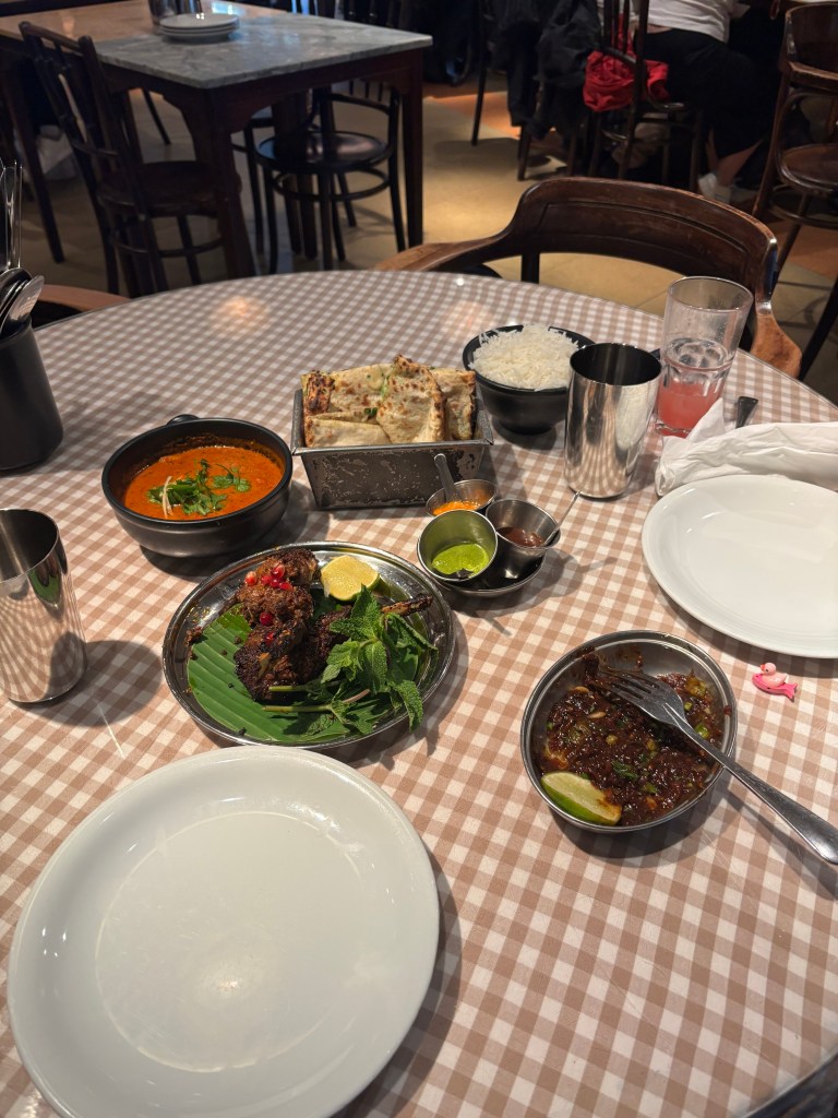 Dishoom has several different locations all over London and one in Edinburgh. I ate twice at the Covent Garden location and spent a total of 70 dollars there and it was absolutely worth it. Dishoom pays homage to the old Irani cafes of Bombay with it’s immersive restaurants scented with fargrant incense and traditional decorations. It serves the food of Bombay with a vast menu crafted carefully like, “Biryani to the curries of Mohammed Ali Road, and the famed grills of Colaba, along with first-class Small Plates, Breads and Rice.” I enjoyed sharing plats with friends while experiencing some of the best Indian dishes I’ve ever tried. Although I enjoyed everything I tried, my favorites were roasted lamb topped with pomegranate, red chicken ruby curry, and the house chaat (which included both warm, cold, sweet, and tangy ingredients with golden fried swat potato, cool greek yogurt, pomegranate, beetroot, radish, and carrot).