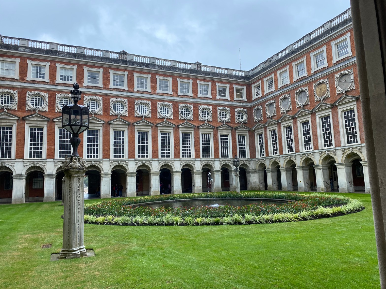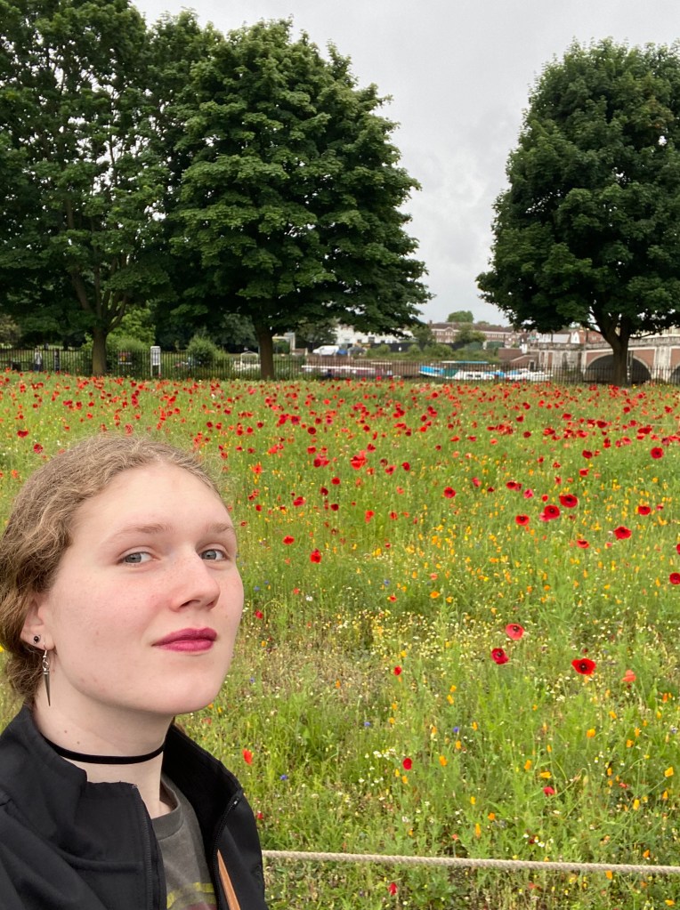 The day was cloudy, my mind, foggy. A lovely train ride, that old sleepy joy, took our group out to Hampton Court Palace. I didn’t nod off during this drive, but I did find myself slipping into a sort of drear. It was a kind of ironic aloofness that occasionally takes me over, where my thoughts feel veiled even to myself. A gentle rain pattered around us on the approach to the palace, droplets bouncing on the pretty poppies populating the front garden. I could still appreciate the majesty of this place. Still smell the flowers and absorb the atmosphere of import this place imparted.