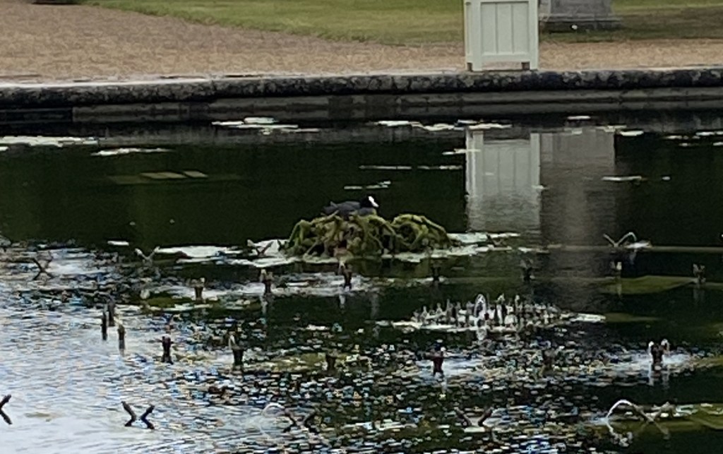 The rain subsided, and I walked out into a surreal garden. It was huge, and ablaze with comfortable social activity. Birds of many kinds zipped among ponds and mushroom-shaped trees. I appreciated the reprieve from stuffy hallways. I think this is where I would spend much of my time, living in a palace like this. It is a sincere dream of mine to build a palace of a house with my partner, Goodwin. A home not so massive as this one, but certainly with a large and welcoming garden space to lounge about in. I left this garden yearning for that dream.