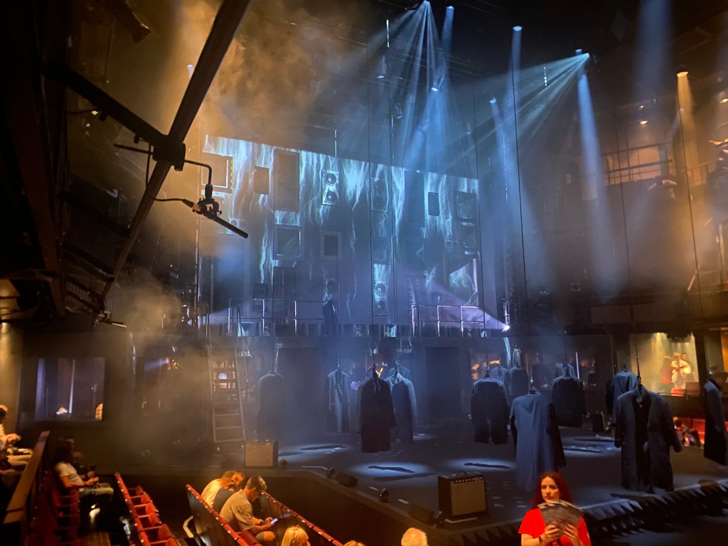 Listening to music is a very visual experience for me. I almost always have a set of visuals and scenes put together for any given song, and will put a new one together when listening to a new song. It’s an almost synesthesia experience, where the qualities of the sounds in a song dictate the visual color and texture of the associated musical story I tell myself. Hamlet Hail to the Thief managed to capture the texture of Radiohead so, so well. When I listened to the album afterward, I found that the performance had impacted and pre-structure the story I imagined for every song. This is quite a personal angle for an analysis, but I think for me it says something really strong for this show’s artistic vision.