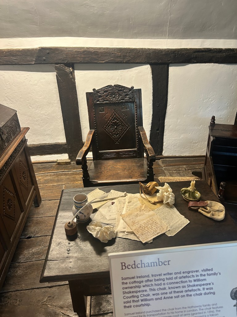 The cottage had so many pieces of furniture that were original to the Hathaway family/Shakespeare, including Shakespeare’s writing chair, and the Hathaway bed original from the 1500’s. It was incredible to see furniture this old and belonging to such significant historical figures – especially something like a bed, so intimate. It makes me wonder how they could have ever known that 500 years from their lives people would be flocking in just to get a look at their humble bedrooms and kitchens. I guess we never really know the impact we leave, and I think in a lot of ways that is beautiful. They really did just exist, and love and cry and work and then finally die, just like we all will. It makes me feel so nostalgic, even though this wasn’t my life, but almost like they’re looking down and seeing us imagine what their lives were like. I wonder what they think about that.