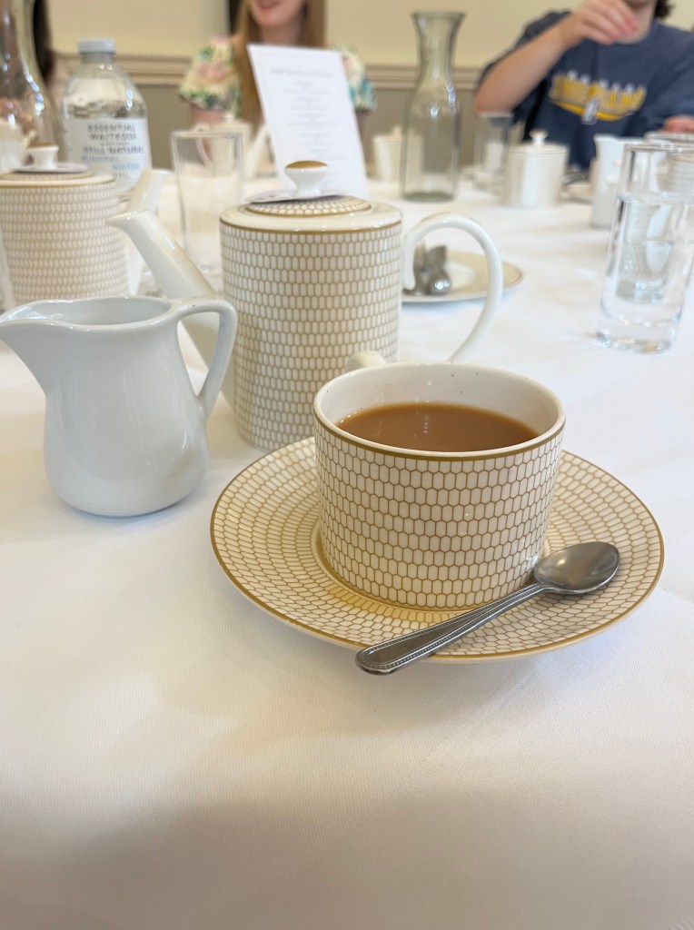 In our wandering, Kaylee and I first landed on a Greek restaurant for lunch. However, after realizing they did not have food to accommodate our dietary needs, we circled back to a vegan cafe we had passed earlier in the afternoon. Long story short, IT WAS AMAZING!!! The food was so good, and Kaylee and I split our meals. We also got a slice of vegan mocha cake that was heavenly, and I want to go back just for that. We then wandered in and out of some of the cute souvenir shops before we stumbled upon a TK Max (England’s TJ Max) and finished our shopping there. Then it was off in time for afternoon tea!! (which I should have saved more room for)
