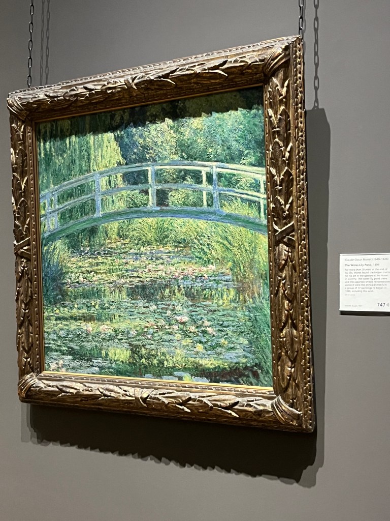 My two favorite paintings at the National Gallery were Monet’s Waterlilies; The Water-Lily Pond, Water-Lilies, Setting Sun and Water-Lilies. Of course with honorable mentions to Van Gough and Picasso. These paintings instantly drew me in as I had a childhood connection to them. We painted them in an art class when I was in 1st grade and then again when I was older (I can’t remember the age). I’ve never seen these paintings in person before, and getting to see how Monet uses the paint to perfectly blend together water was a magical sight. The Water-Lily Pond was the painting that I was most looking forward to seeing and it was the one that I have painted the most. What can I say, a girl is a sucker for a bridge with her favorite flower, I really wish I could just live in that painting some day.
