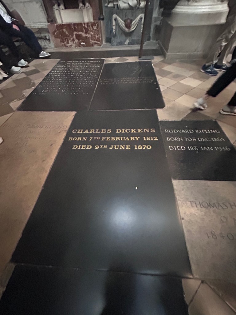 The thing that strikes me the most about this painting is the expression on Darwin’s face, which I can not quite pin down. He was a man who spent his life in the pursuit of controversial truths, and I feel like something about his face captures that. There is wisdom and knowledge in his eyes, but also a certain amount of sadness. The lighting on his face adds to this feeling, which leaves his eyes in deep shadows. His worn down coat and hat humble his appearance, but his posture and silhouette have a certain regalness to them, with his coat almost giving the illusion of a cape. I feel like this contradiction matches who Darwin was as a person. He had to juggle his scientific research and the religious beliefs he had held his entire life prior. He wanted to spread information and knowledge, but received scorn and hatred for doing so. It is somewhat ironic that despite how religious institutions have historically viewed his work he was buried at such a religiously important space, Westminster Abbey.